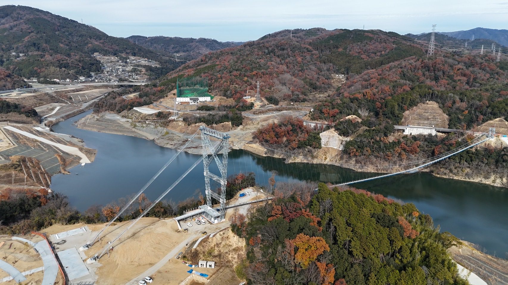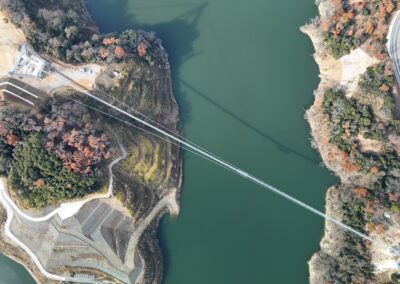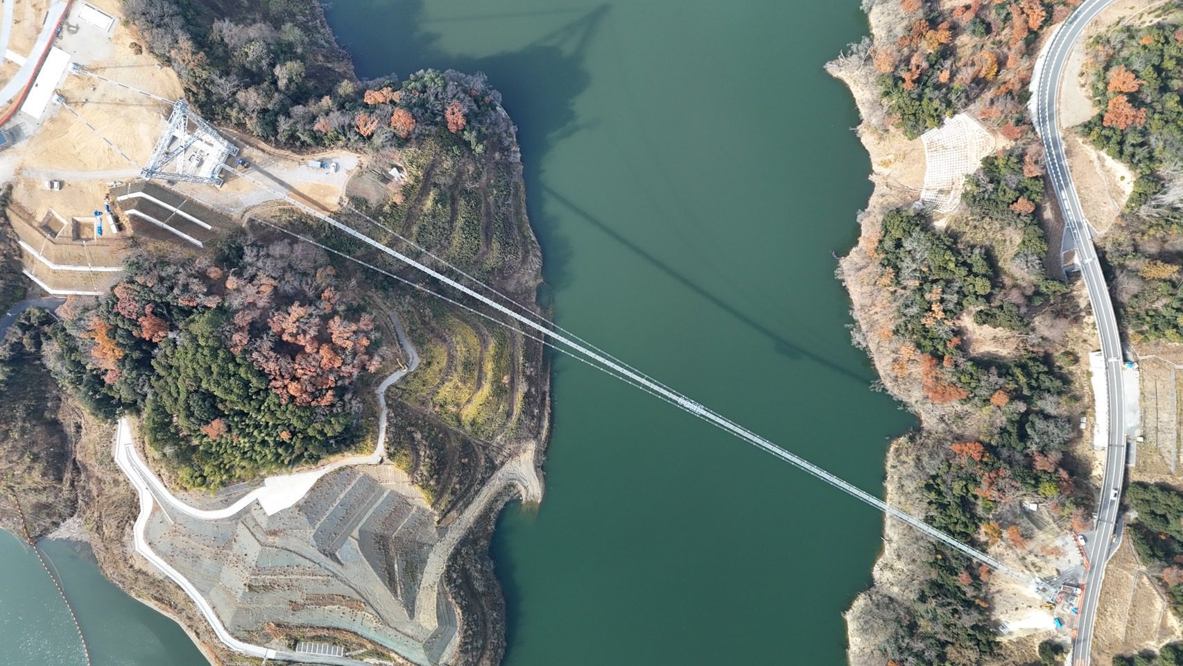 Take in the breathtaking scenery as you walk across the 420-meter-long suspension bridge spanning Aigawa Dam!