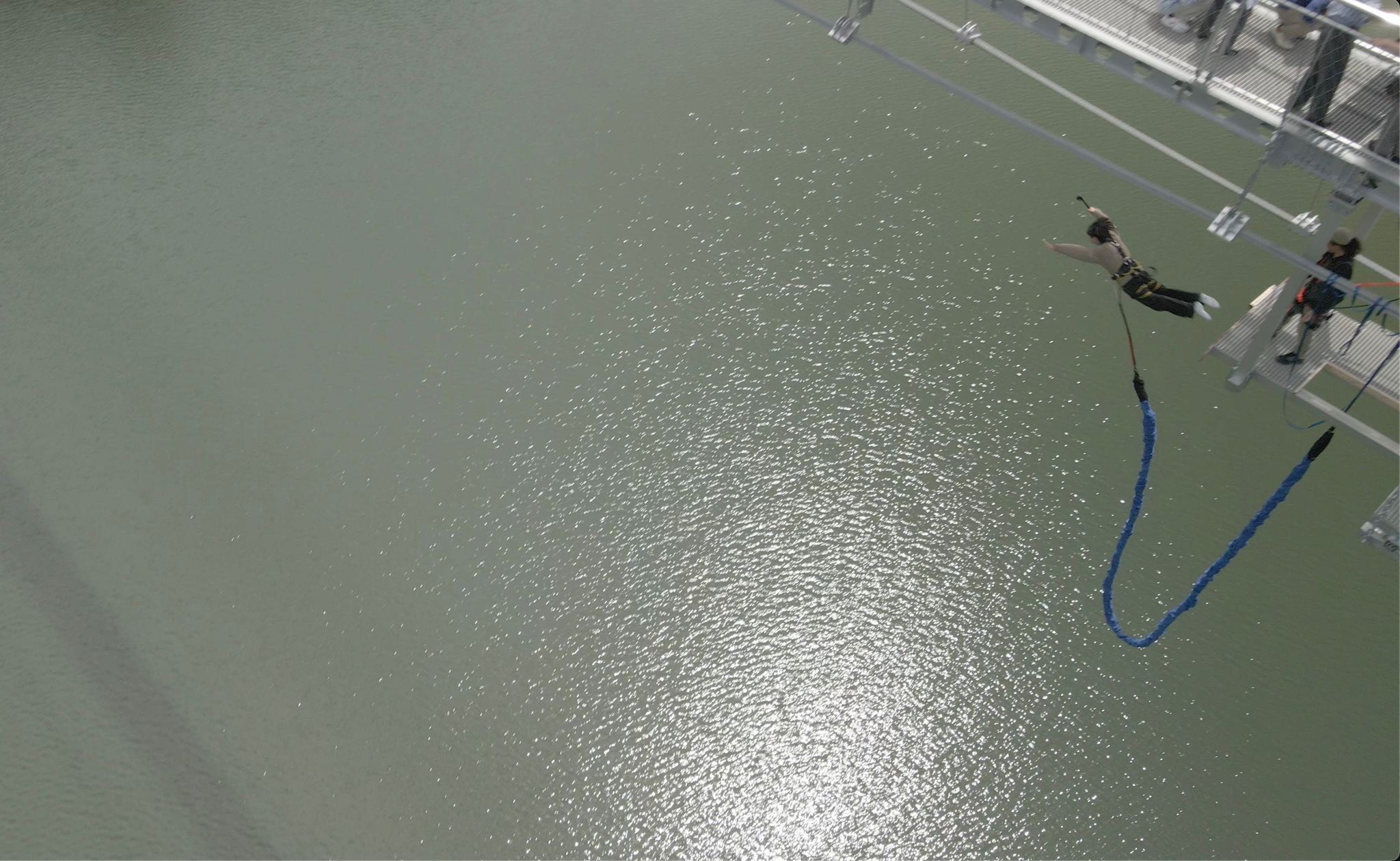Jump toward Aigawa Dam Lake! Experience a free fall of about 50 meters at over 60 km/h!