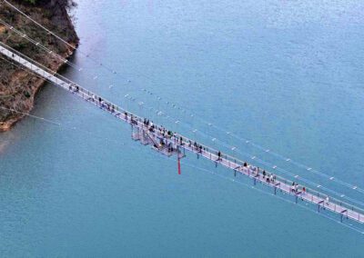 展望広場ではダイナミックな下部構造やロックフィルダム(岩石や土砂を積み上げて建設するダム)の側面を見ることができ、学びの場としても活用いただけます。様々なアクティビティも体験でき、学び・冒険・癒しが詰まったつり橋です。