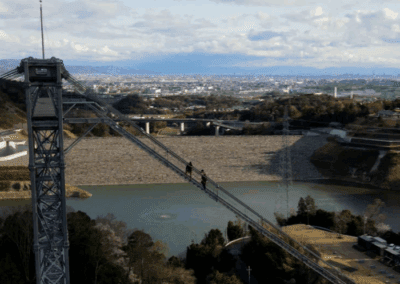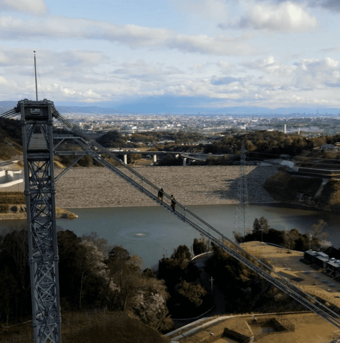 雄大な景色を眺めながら、安威川ダムに架かる全長420メートルのつり橋を歩いて渡ろう!