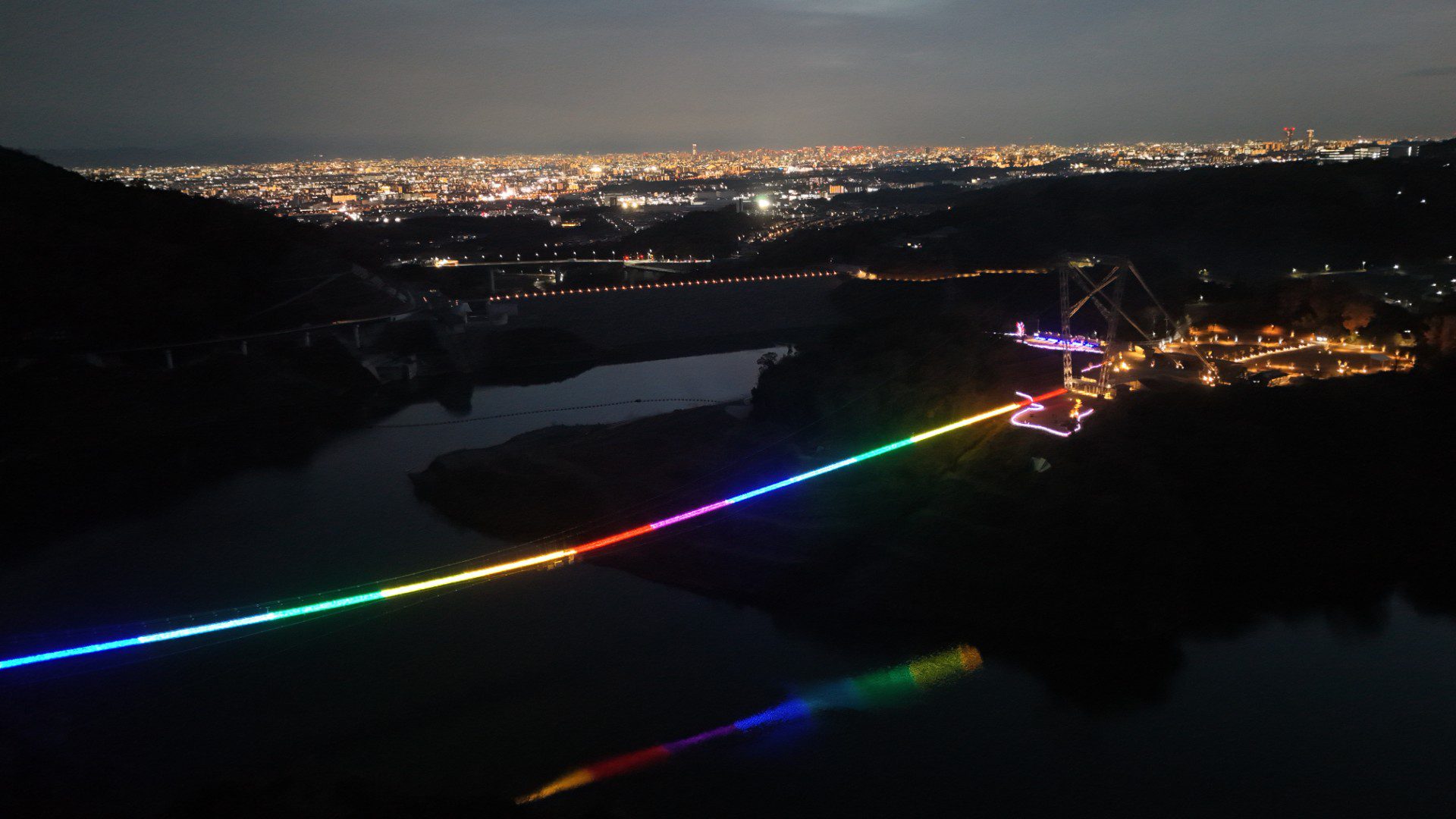 GRAVITATE OSAKAのつり橋 “GODA BRIDGE(ゴウダブリッジ)”は、全長420mで日本最長、世界で3番目に長い歩行者用つり橋です。